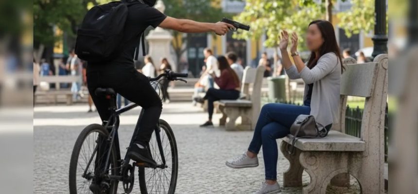 Segundo a vítima, dois homens se aproximaram em uma bicicleta e anunciaram o assalto de forma rápida, dizendo: “perdeu, perdeu”, antes de arrancar com o aparelho.